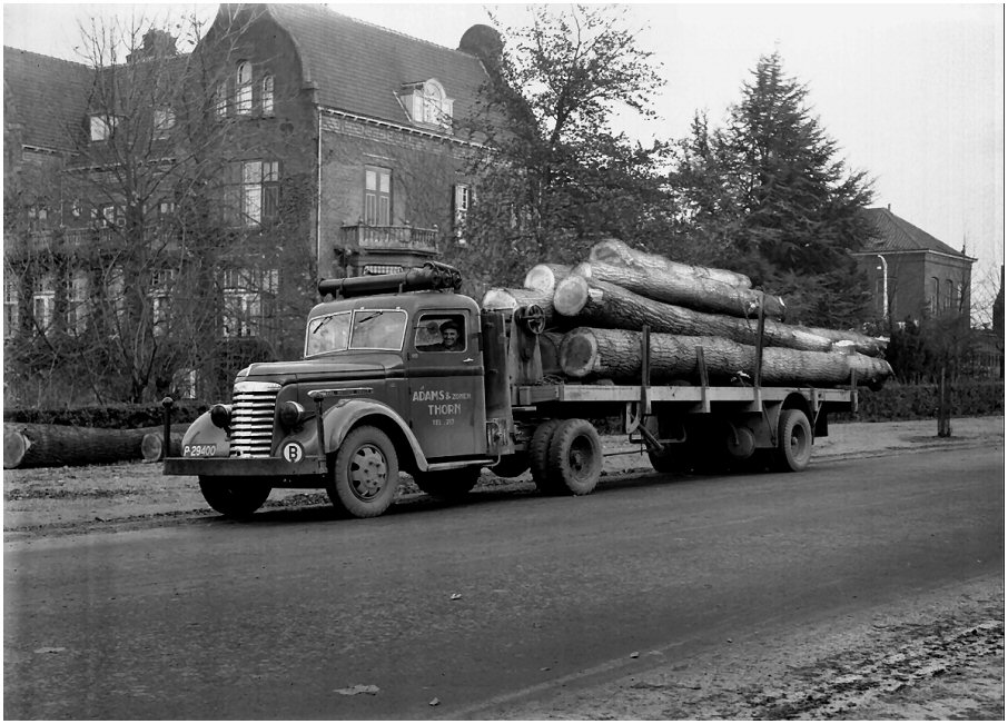 Roermond Wilhelminasingel, hotel Kissels met op voorgrond een vrachtwagen van Transportbedrijf Adams te Thorn |
