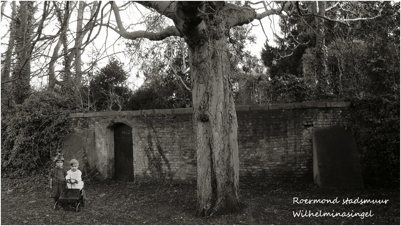 Stevensweert, winter aan de Molenplas met zijn oude opgegraven stammen