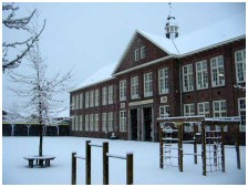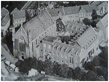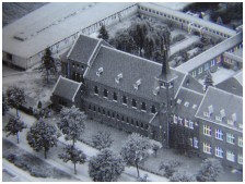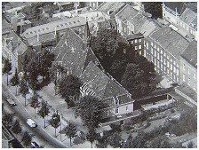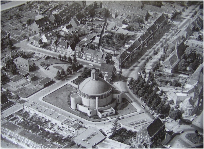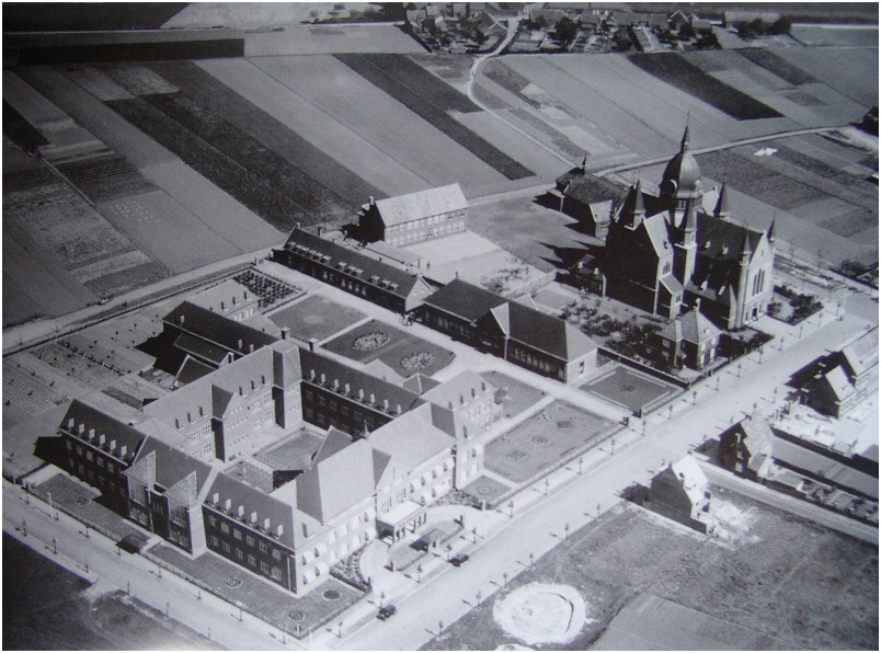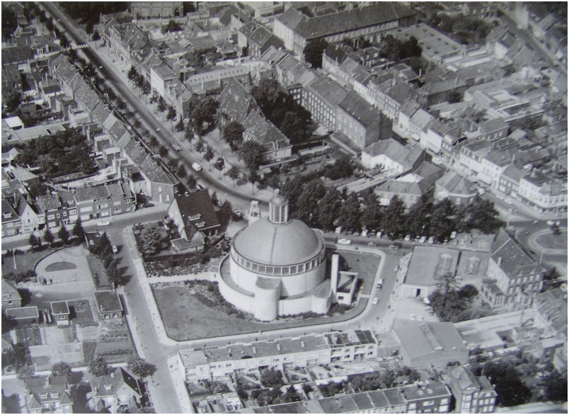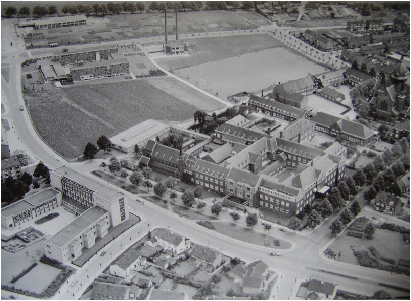 Hartkerk met ernaast de pastorie en het oude St. Laurentius Ziekenhuis. |