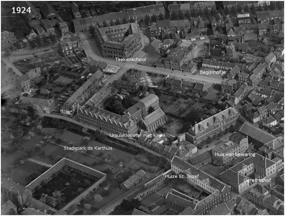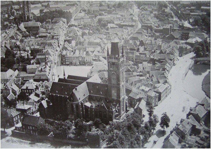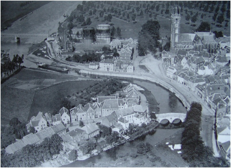 beneden op de grote foto het oudste gedeelte van de Voorstad Sint Jacob. |