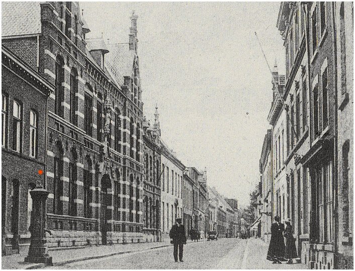 de oude gietijzeren St.Michielspomp in de Neerstraat voor 1928 |