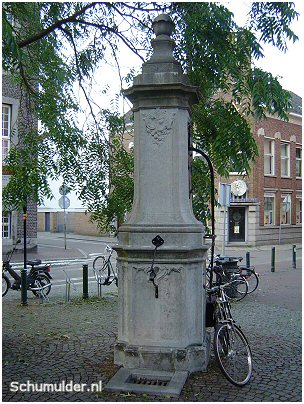 werd een eenvoudige loden pomp geplaatst en werd er een houten pompkast In de 18e eeuw verschenen voornamelijk in de sjiekere buurten prachtige hardstenen waterpompen.